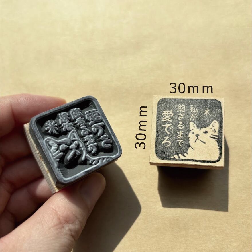 「私が飽きるまで 愛でろ」という、猫らしい性格をはんこにしました。