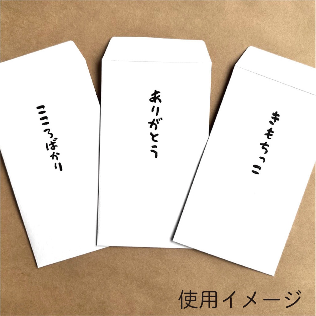 封筒の上部や中央に押すだけで、簡単に気持ちの伝わるひと袋が作れます。