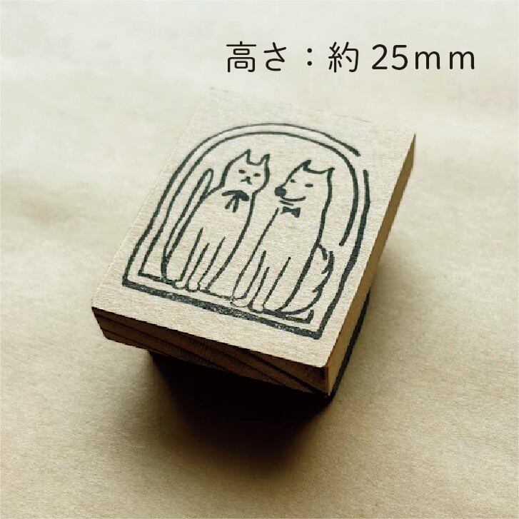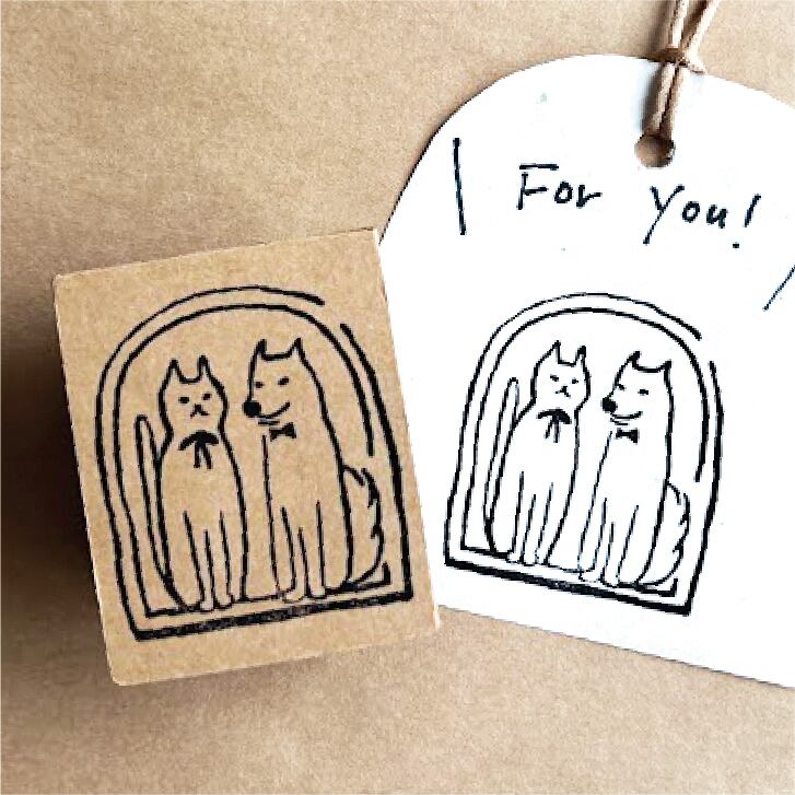 窓辺で仲良く並んだ「ねこといぬ」のはんこ。
